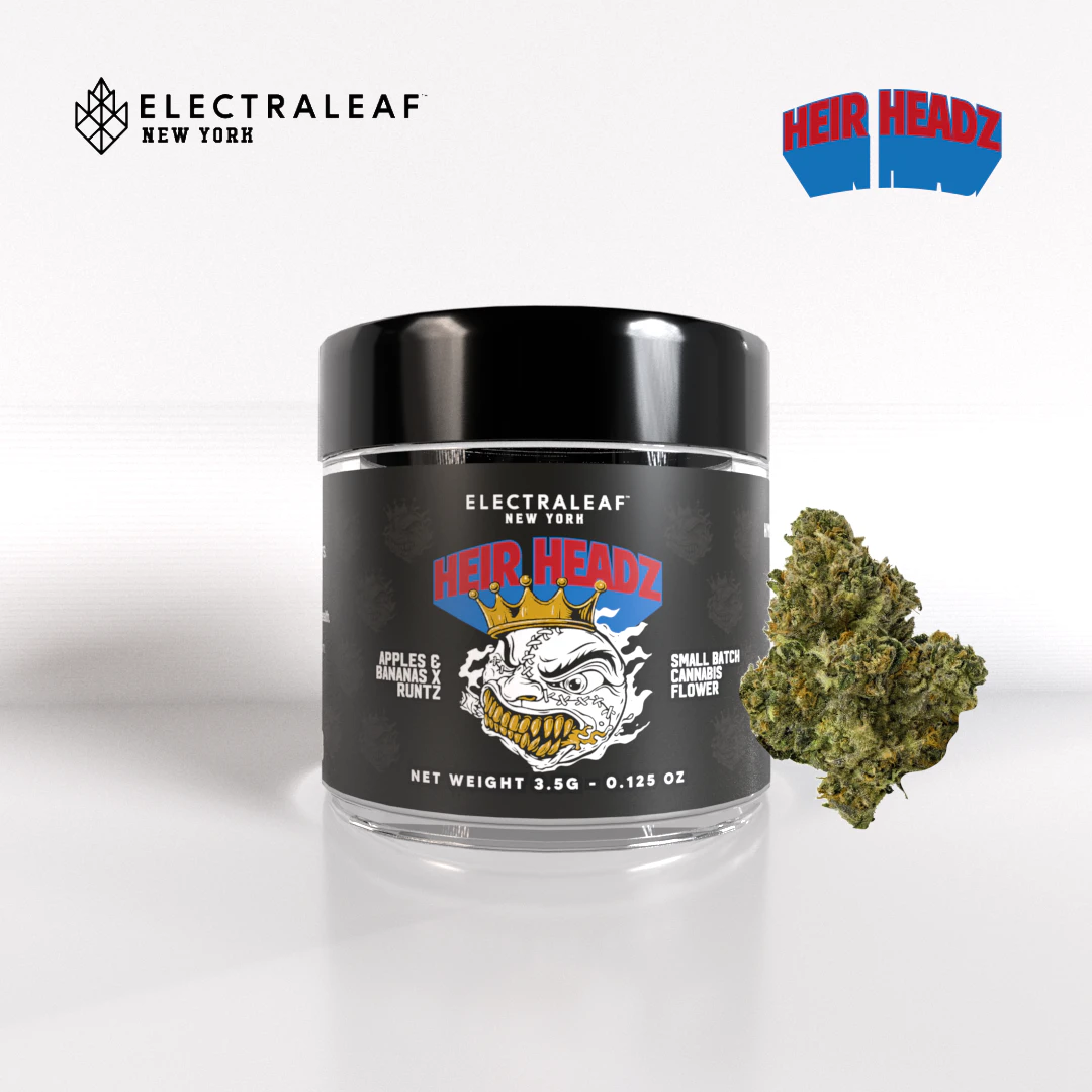 Heir Headz is a regal hybrid rooted in fruit-forward depth and candy sweetness, born from the potent cross of Apples and Bananas × Runtz. It unfolds like a green orchard turned candy store crisp apple and creamy banana, drizzled with sugar and backed by a sticky, dank foundation. The aroma bursts with fresh fruit candy notes, bright tropical undertones, and a whisper of earthy gas. On the palate, the inhale delivers bright green apple and creamy banana swirl; the exhale brings forward richer candy tones, berry undertones, and mellow skunk spice for balance. It’s a strain with both sugary charm and hidden bite.
