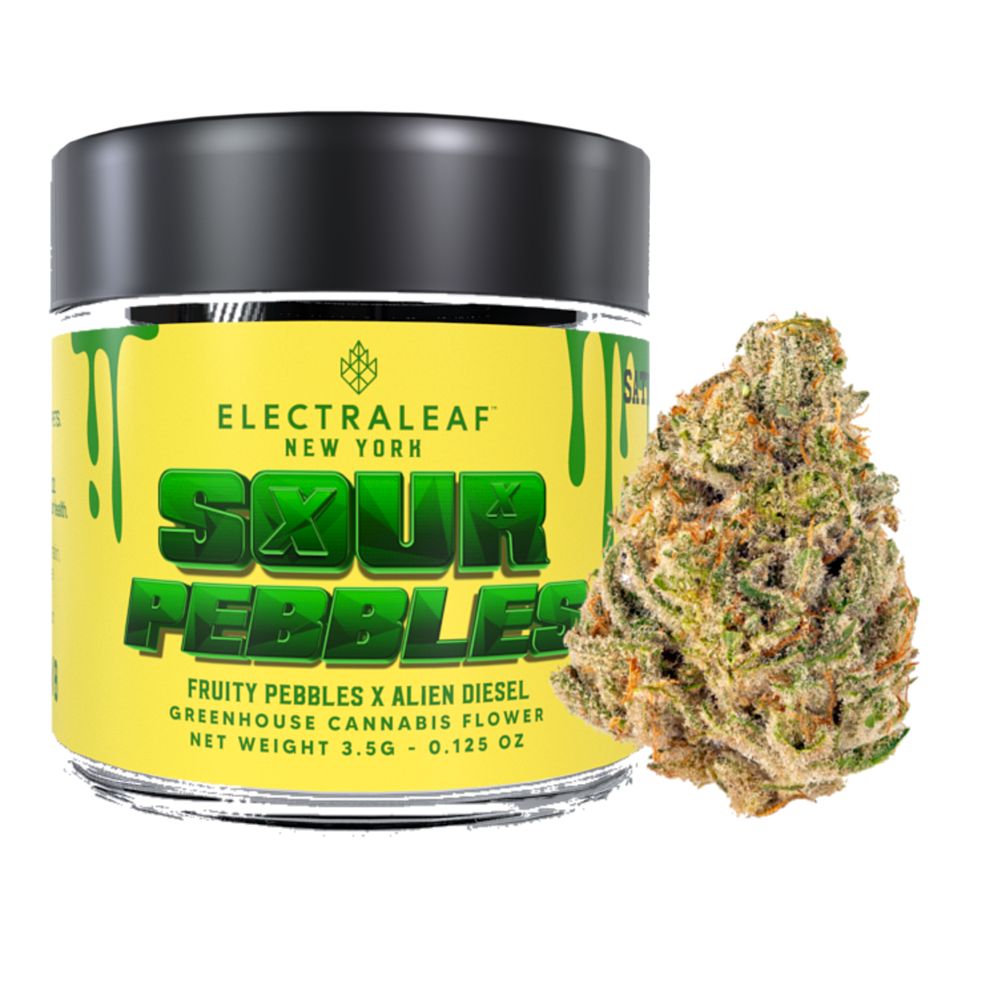 Sour Pebbles, a sativa-dominant hybrid from Electraleaf, delivers a powerful cerebral experience with a delightful twist. This award-winning strain is a cross between the legendary Fruity Pebble OG and the potent Alien Diesel, resulting in a unique profile that’s both sour and sweet.