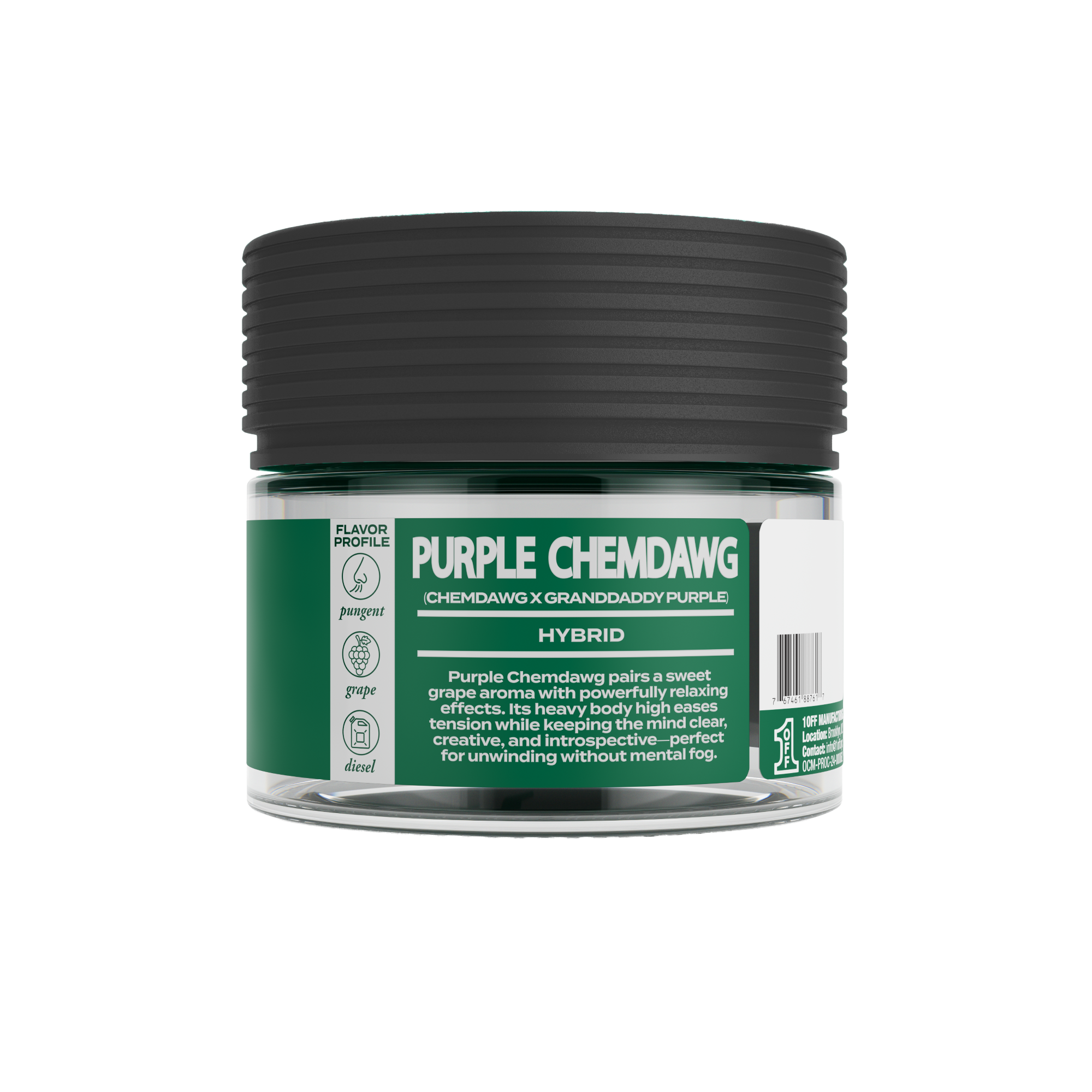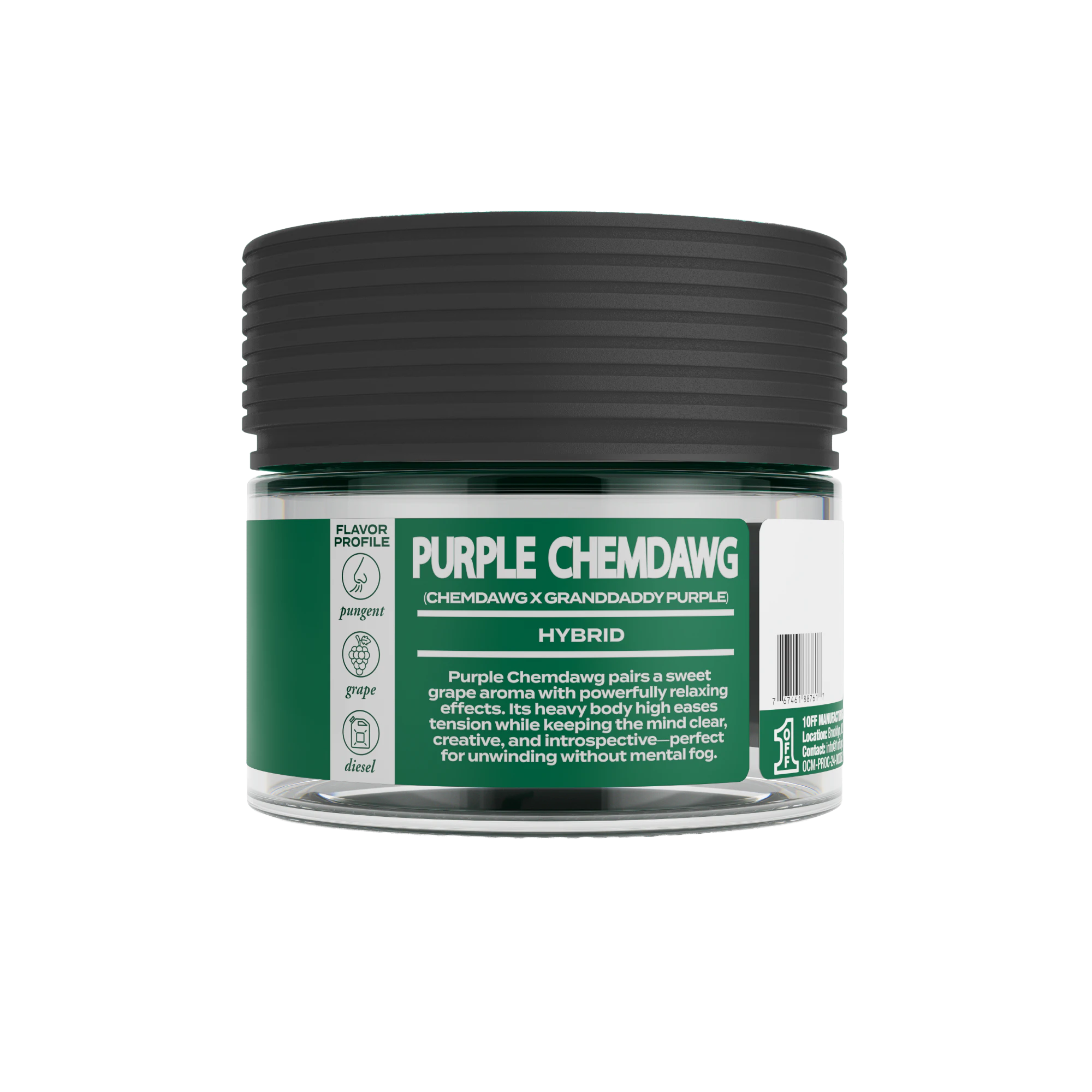A bold mix of chemical gas and sweet grape notes. Purple Chemdawg delivers strong cerebral effects paired with heavy body relaxation—potent, flavorful, and best suited for experienced users.