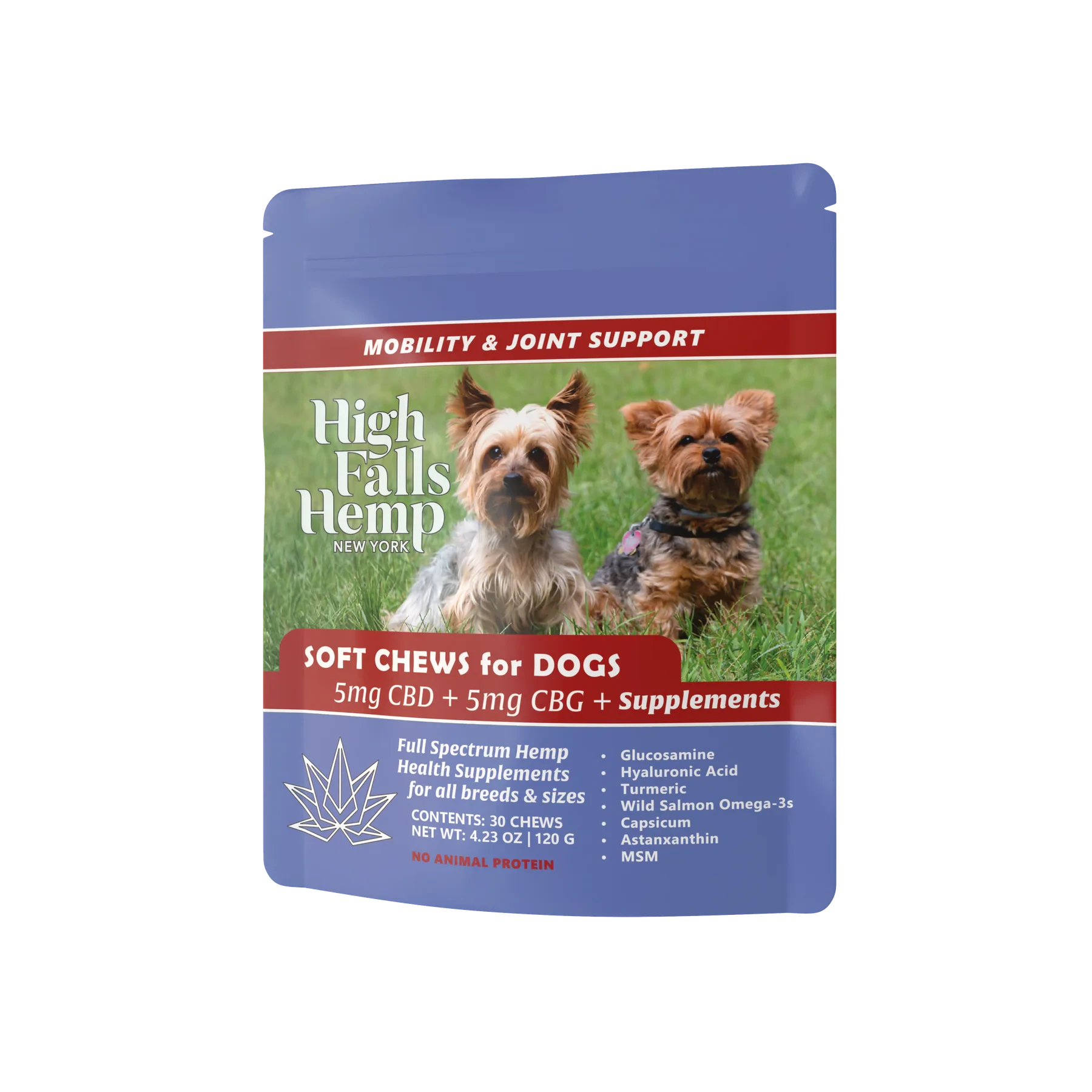 Soft Chews for Dogs from High Falls Hemp! These delicious treats make it easy to look after your furry friends, with a hickory smoked sweet potato flavor they'll love, and natural enhancements for their health and happiness you'll appreciate for years to come.