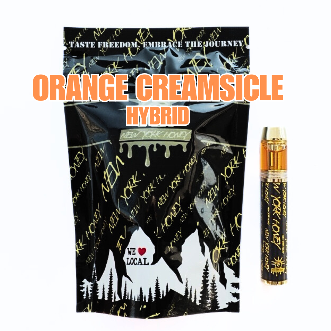 Experience a burst of joy with Orange Creamsicle! This sativa-dominant hybrid, a delightful cross between Orange Crush and Juicy Fruit, offers a tantalizing blend of orange citrus, apricot, and vanilla flavors. Orange Creamsicle delivers uplifting, focused, and happy effects, making it perfect for brightening your day. Each puff from New York Honey’s eco-friendly, hand-crafted vape is a testament to our dedication to quality and sustainability. Created by Veterans Choice Creations, our rechargeable and reusable vapes ensure you enjoy a premium experience with every inhale.