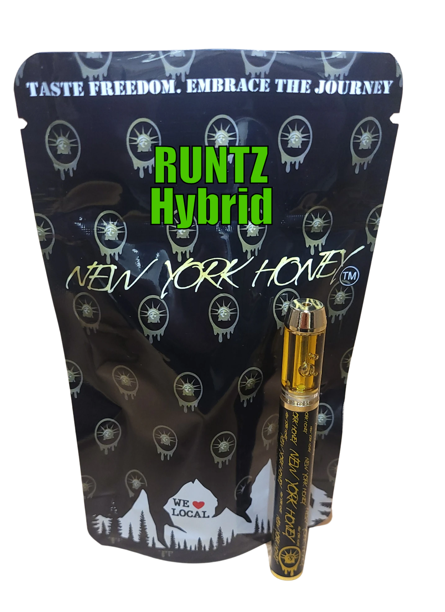 Runtz is a hybrid strain that has a sweet and fruity aroma, with hints of candy and tropical fruit. It is known for its relaxing and euphoric effects. Welcome to the NY Honey Vape Experience! Did you know? Your NY Honey Vape is not just any vape - it's a hand-crafted and custom-blended piece of art, designed for maximum effect and enjoyment. Plus, it's eco-friendly! While sold as disposable, your NY Honey Vape cartridge is actually RECHARGEABLE and REUSABLE. To recharge, simply: Locate the NY Honey drip logo on the bottom of your cartridge. Unscrew the logo to reveal a hidden charging port. Having trouble? Don't fret! Please feel free to reach us directly at NYHoney@veteranschoicecreations.com with any issues concerning the function of your cartridge. We're here to help! And here's a sweet secret: Your NY Honey Vape cartridge is also REFILLABLE. You heard it right! We're excited to announce that in the near future, we'll be releasing a refill tube. So, hold on to your hardware to enjoy our top-quality product even longer and do your part to minimize waste.