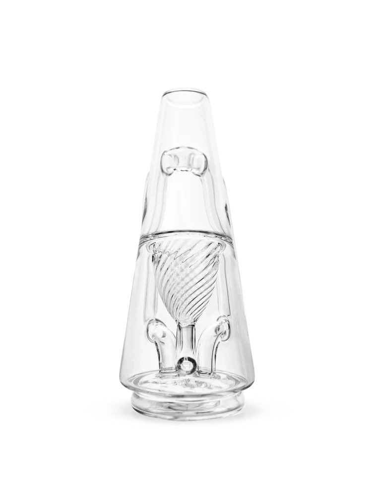 The Ryan Fitt Recycler is a collaboration with master glassblower Ryan Fitt. This glass Top for the Peak & Peak Pro provides more water volume and improved filtration, featuring a fluted inner funnel and external intake tubes for a cooler, bigger, more consistent hit.