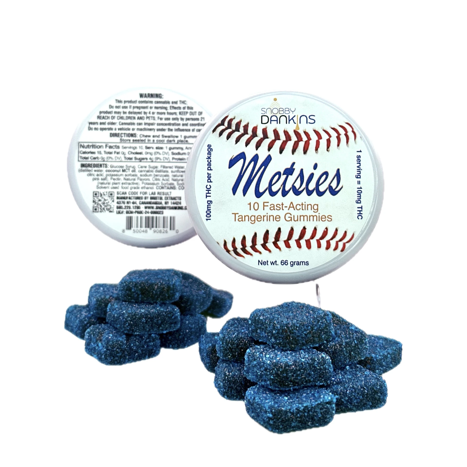 The Metsie fast-acting tangerine gummies by Snobby Dankins are a home-run homage to a