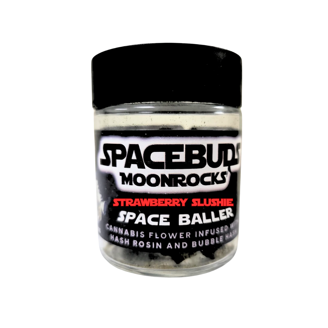 Dive into a refreshing and potent experience with Spacebuds Moonrocks - Strawberry Slushie! These Moonrocks begin with buds with rich hash rosin and bubble hash, and coated in powdered kief, layering flavor and potency into every nug. Coated in powdered kief, they deliver a vibrant profile reminiscent of a sweet, strawberry treat. With euphoric, relaxing, uplifting, and creative effects, Strawberry Slushie is your ticket to pure enjoyment. Discover the bold innovation of Veterans Choice Creations with every puff.